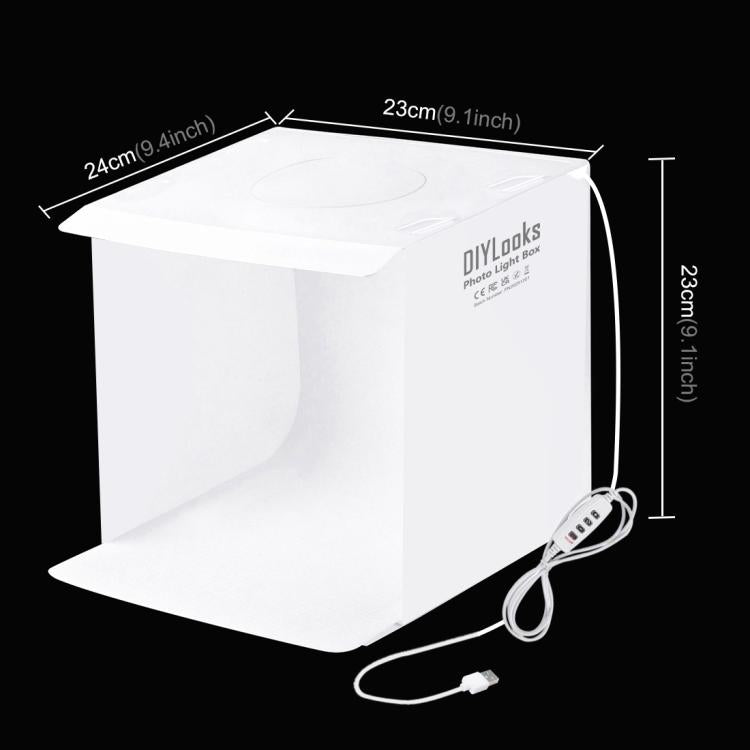 23cm Ring LED Panel Folding Portable Light Photo Lighting Studio Shooting Tent Box Kit with 6 Colors Backdrops (Black, White, Yellow, Red, Green, Blue), Unfold Size: 24cm x 23cm x 23cm