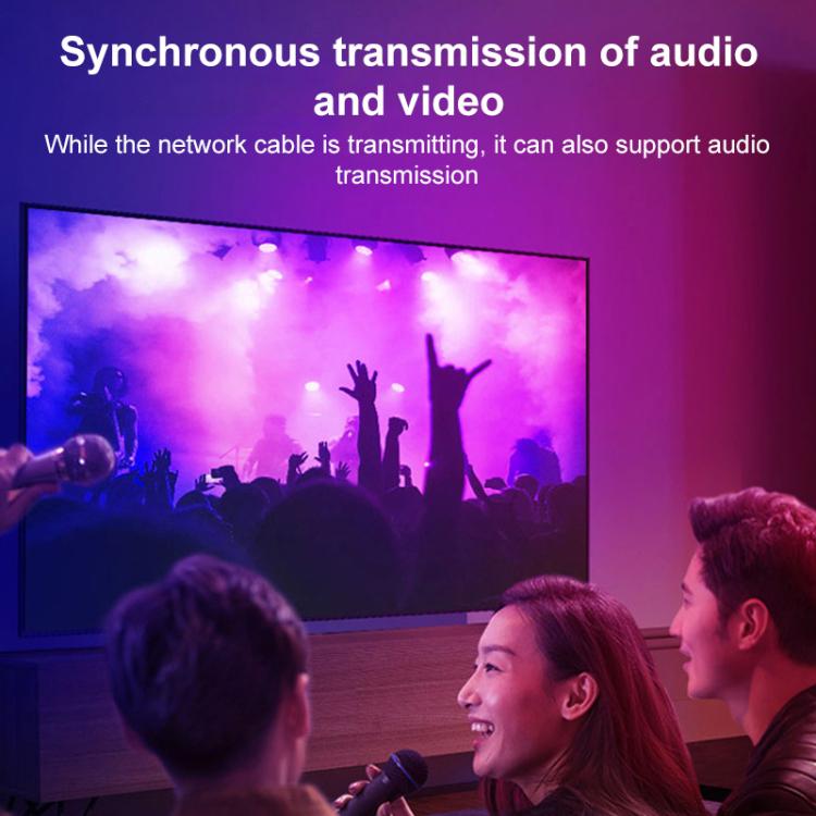 4. HD smart chip, through the six categories of oxygen-free copper network cable, transmission HDMI audio and video signal performance stability, smooth transmission without lag