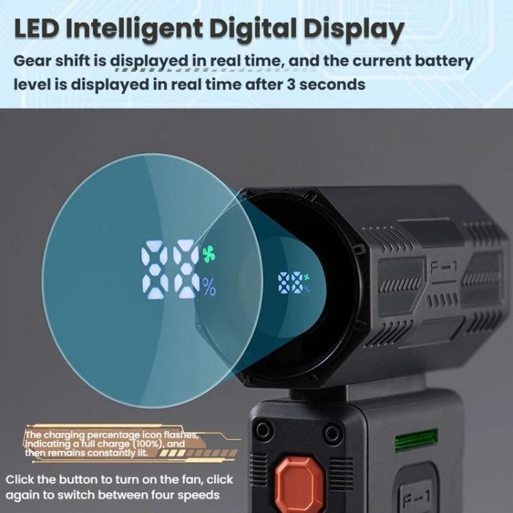 F1 Handheld High Speed Digital Display Turbo Fan Mini Portable Outdoor Camping Gathering Fan, Black